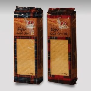 بسكويت ويفر ساده معبأ في اكياس وزن الكيس يتراوح بين 30غ الى 50غ عدد في الكرتونة الواحدة 144 قطعة